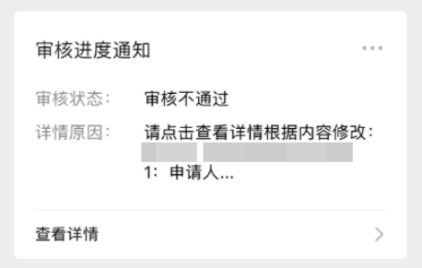 审核不通过——需根据审核意见修改申请资料后重新提交审核。