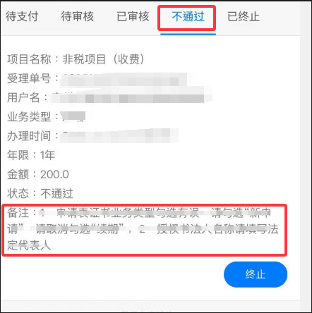 若审核不通过,请根据备注内容,点击页面订单内容进入修改,如图: