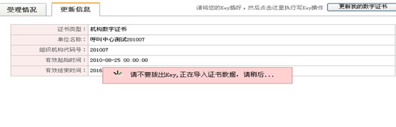温馨提示:证书到期更新前请确认已插好数字证书,整个更新过程完成前请不要将数字证书拨出电脑;