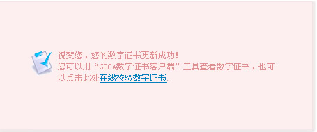 8、成功导入数据后,您将看到数字证书更新成功的提示页面(如下图),至此,您的数字证书更新操作已全部完成。