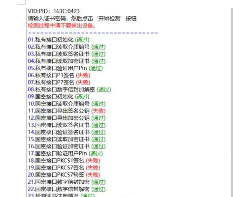 3.检测过程中请保持数字证书连接,不要拔出,耐心等待检测完成(不同证书类型检测项略有差异,通常为 28-33 项);