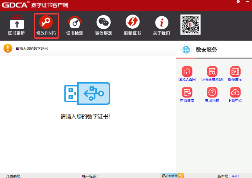 1.打开 GDCA 数字证书客户端,将 U-KEY 插入电脑 USB 接口;
