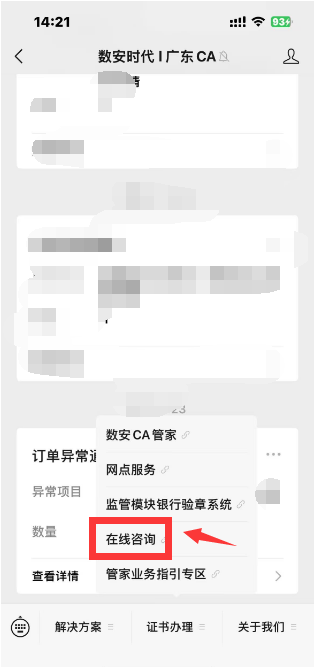 若自助操作无法解决问题,可在工作时间内容通过以下方式联系人工在线客服,以下方式二选一即可(咨询准备:提前准备证书介质编号、故障截图及电脑操作系统版本,便于客服快速定位问题)