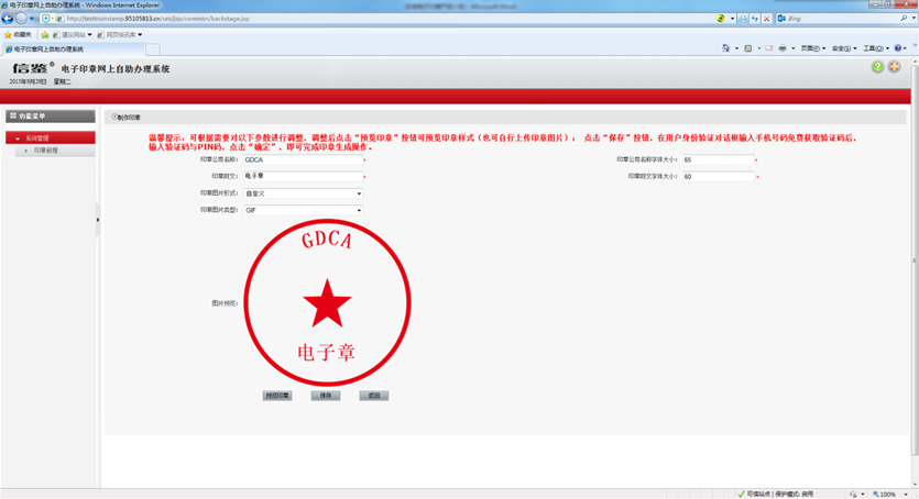 电子印章网上自助办理系统: